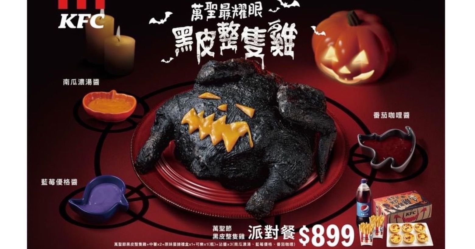 肯德基限量新品| 「萬聖節黑皮整隻雞」10/13 變裝登場